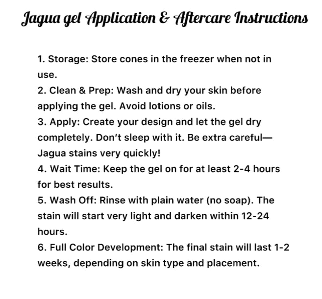 Our Jagua Gel Cones are perfect for those who love natural, temporary body art with a bold and beautiful stain. Ready to try it? Order now and experience the magic of Jagua!